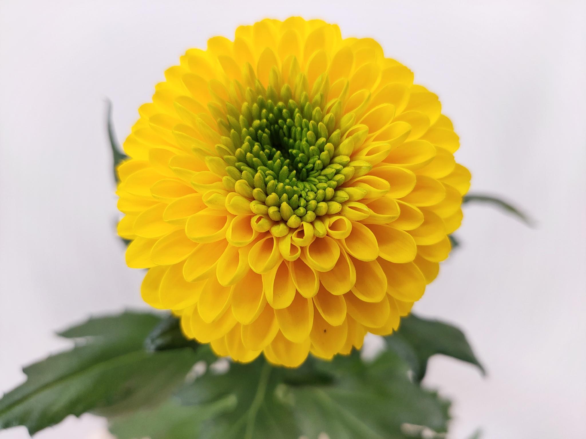 Хризантема Brasiliana — солнечно-жёлтый сорт с густыми лепестками.